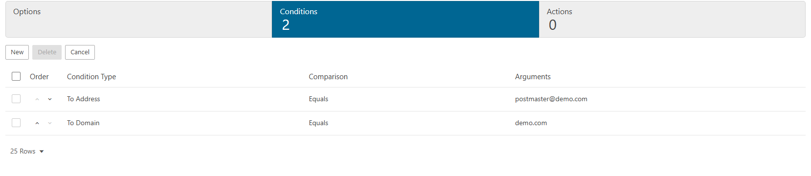 Events are automated triggers that watch for specific things happening on the mail server and then perform an action in response. Unlike Content Filtering — which focuses on the content of individual messages — Events are broader and can respond to account-level activity such as receiving a new message, approaching your storage quota, or a failed login attempt.