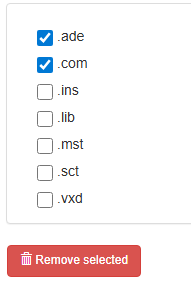 Uncheck extensions you no longer want to block, then click Remove Selected to delete them.